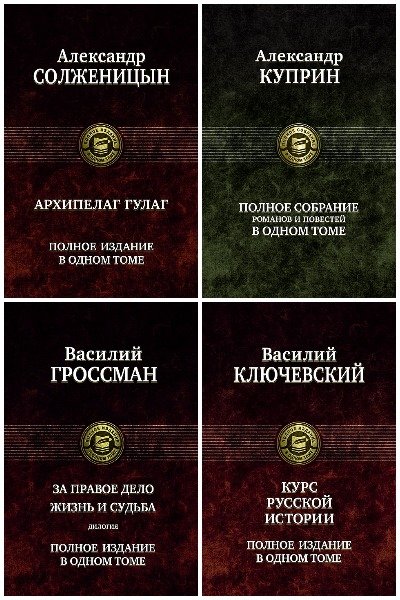 Полные собрания и издания произведений всемирно известных писателей, историков, философов. "Полное издание" и "Полное собрание" - две серии 100 книг.
